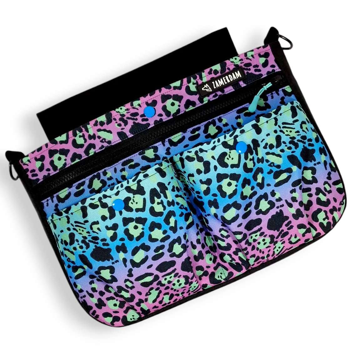 Torbo-saszetka to połączenie torby z saszetą treningową, którą można nosić na biodrach. Jest to idealne połączenie dla osób, które zdecydowanie częściej psie gratki noszą w torebkach i ta wersja bardziej im odpowiada, a wszyty tunel umożliwia wrzucenie torby na bioderko, jeśli jest taka potrzeba. Torba w całości uszyta jest z wodoodpornych tkanin. Przód uszyty jest z drukowanego poliestru wodoodpornego, a boki oraz tył torby z kodury. W środku torby wszyta jest podszewka wykonana z mocnego wodoodpornego oxfordu.